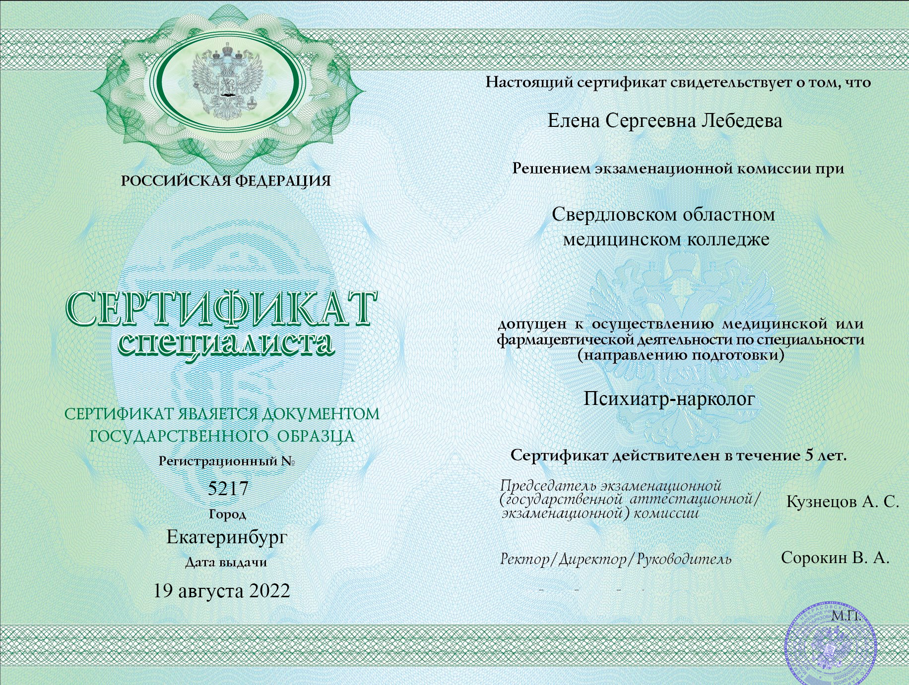 Должность: Психиатр-нарколог